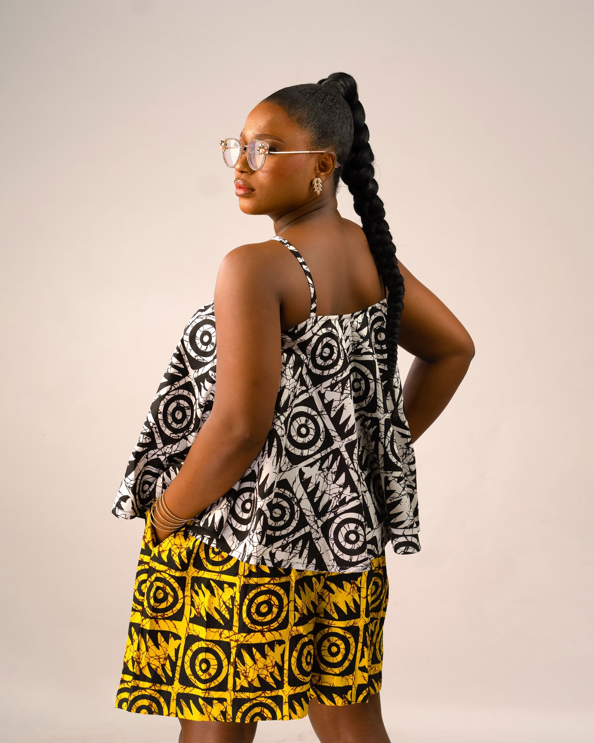 This Oju Pattern Co-ord features a medium size and is made with Ankara fabric, creating a stylish and unique look. The co-ord set includes both a top and shorts, perfect for showcasing your fashion-forward style. Elevate your wardrobe with this trendy and versatile piece.